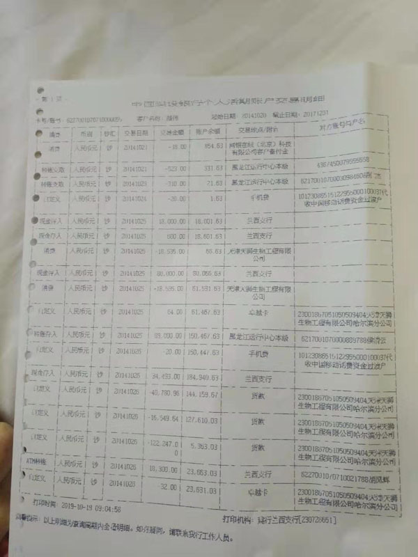 这是受害者给天狮公司转账的流水