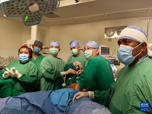 10月6日,在斐济首都苏瓦殖民战争纪念医院,中国海军“丝路方舟”号医院船医生与当地医生为患者进行手术。 当地时间10月8日上午,正在执行“和谐使命-2025”任务..