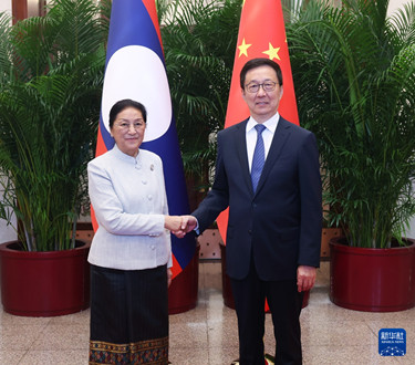 10月14日,国家副主席韩正在北京会见来华出席全球妇女峰会的老挝国家副主席巴妮。新华社记者刘卫兵摄新华社北京10月14日电 10月14日,国家副主席韩正在北京会..