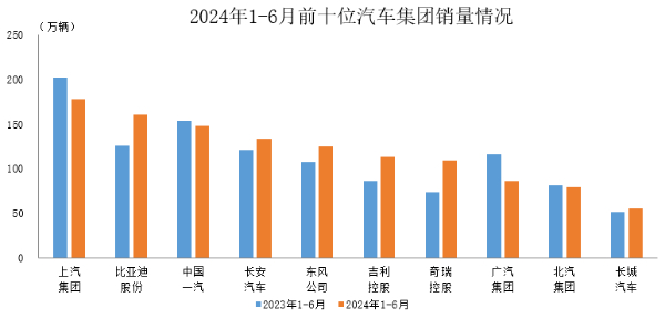 2024年上半年,伴随着以旧换新、新能源汽车下乡等利好政策持续落地,车企加快新技术、新车型的研发速度,叠加车企半年度节点冲量,汽车市场消费潜力进一步释放,汽车产销保持平稳增长。中汽协发布的数据表明,今年1-6月,汽车产销分别完成1389.1万辆和1404.7万辆,同比分别增长4.9%和6.1%。 据中国汽车工业协会分析,今年以来,汽车行业主要经济指标呈现增长态势。上半年,国内汽车销量同比微增,终端库存高于正常水平。中国品牌乘用车市场份额超60%,实现向上突破,新能源汽车市场占有率稳步提升,汽车出口保持快速增长,对拉动市场整体增长贡献显著。 中国自主品牌持续向上 市场份额占比超60% 2024上半年,中国汽车自主品牌的市场份额稳步攀升,中国品牌乘用车在国内市场的占有率超过了60%,创历史新高。随着自主品牌技术实力不断取得突破,消费者对自主品牌的认可度不断提高,中国汽车自主品牌正经历一场历史性的变革,汽车市场格局正得以重塑。 从企业市场层面数据来看,今年1-6月,汽车销量排名前十位的汽车集团中有6家实现了同比正增长。包括比亚迪、奇瑞、长安汽车、吉利汽车、东风汽车等在内的多家车企增速较为显著,交出了一份令人满意的成绩单。 来源:中汽协 在自主品牌车企中,比亚迪一路领跑。上半年比亚迪乘用车累计销量达161.3万辆,同比增长28.46%。今年以来,比亚迪相继推出多款荣耀版车型,取得了良好的市场反响。长安汽车和奇瑞集团累计销量分别为133.41万辆和110.06万辆。其中,奇瑞集团半年度销量首次突破百万辆,创下历史新高。吉利汽车上半年累计销量95.57万辆,同比增长41%,以近百万辆的成绩圆满完成“半年考”。鉴于此,吉利逆势上调全年销量目标上调约5%,从190万辆增至200万辆。东风汽车的自主板块表现强劲,1-6月累计销量为66.4万辆,同比增长45.5%,新能源跃迁成果斐然,彰显出企业的深厚内功。 反观合资品牌,入围销量前十的合资品牌车企均出现同比下滑趋势。中金公司研报指出,合资车企在燃油车领域建立的技术壁垒逐步被削弱,在电动车领域的技术能力、产品力和品牌认知尚未形成,电动化转型的最佳窗口期日渐收窄。未来中国合资车企面临三条出路,一是坚定转型、本土化;二是像大众一样与中国车企合作,补足短板;三则是退出中国市场。 比亚迪在今年3月的业绩交流会上表示,国内企业一旦技术起来、叠加成本领先,未来3-5年,中国品牌将迎来更大的增长空间,从合资品牌手中抢到更多市场份额。 新能源汽车取得突破 市场占有率达35.2% 中国新能源汽车产销连续9年位居全球第一,而且呈现出规模、质量双提升的良好局面。中国汽车工业协会常务副会长兼秘书长付炳锋表示,中国新能源汽车从无到有,从小到大,已经把先发优势转化为领先优势。 今年1月至6月,我国新能源汽车产销量分别达492.9万辆和494.4万辆,同比分别增长30.1%和32%,市场占有率达35.2%,截止到6月底,国产新能源汽车累计产销量超过3000万辆。新能源汽车不仅延续了快速增长的态势,还呈现出百花齐放的格局。除自主品牌不断加码外,合资车企也纷纷转型拥抱中国新能源汽车市场,共同推动新能源汽车市占率不断走高。6月,我国新能源汽车市场占有率一度达到41.1%。 来源:中汽协 国家发展改革委政研室副主任、新闻发言人李超表示,“新发展理念为我国新能源汽车产业发展提供了引领,我国超大规模市场为新能源汽车产业提供广阔发展空间。此外,充分的市场竞争锻造了新能源汽车产业的竞争力。” 新能源汽车的技术路线之争一直备受关注,曾经被视为“过渡技术”的插电式混合动力逐渐走入主流视野。从细分数据来看,1-6月,我国纯电动汽车产销分别完成299万辆和301.9万辆,同比分别增长9.4%和11.6%;插电式混合动力汽车产销分别为193.7万辆和192.2万辆,同比分别增长83.9%和85.2%。 “今年上半年,纯电动汽车增速放缓,我国新能源汽车产销保持高增长主要靠插电式混合动力汽车的拉动。”中汽协副秘书长陈士华称。 近年来,一众造车新势力车企凭借创新性和灵活性快速崛起,鸿蒙智行、小米等跨界造车起势汹涌,让这一赛道活力倍现。目前处于第一梯队的鸿蒙智行全系上半年销量累计交付达194207辆,理想汽车上半年累积销售188981辆,也从侧面反映出增程式市场表现呈上升态势。 为满足消费者的不同需求,有车企将插电式混合动力系统命名为增程式电动,还有的提出纯电、混动、增程三合一概念。今年3月,东风发布马赫电混PHREV技术, “PHREV”便是PHEV(插混)和REEV(增程)两种动力驱动形式的缩写,融合了纯电、增程、插混三个技术流派的优势;同样在3月,首搭新蓝鲸动力平台的长安UNI-Z发布,可通过算法实现纯电、插混、增程三种驱动模式的无缝切换。 出口激增创佳绩 燃油车提供重要驱动力 近年来,中国汽车企业积极布局海外市场,从东南亚到欧洲,从非洲到南美,中国车的身影驶向全球。在此过程中,中国汽车企业通过优化产品设计、提高品质标准以及加强售后服务网络,不断增强在国际市场上的竞争力。 今年1-6月,中国汽车出口279.3万辆,同比增长30.5%,保持快速增长。中汽协副秘书长陈士华分析认为,中国汽车在国际市场表现良好,出口已成为支撑当前我国汽车市场的重要力量。 在整车出口销量前十的企业中,从增速上看,比亚迪出口20.7万辆,同比增长1.6倍;长城出口20.2