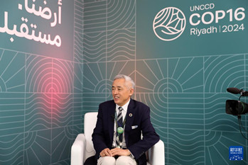 12月10日,在沙特阿拉伯首都利雅得,中国林业科学研究院首席科学家、三北工程研究院院长卢琦在《联合国防治荒漠化公约》第十六次缔约方大会期间接受新华社记者专访。