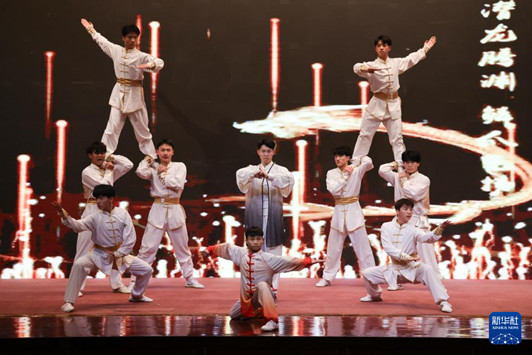 1月10日,在沙特阿拉伯首都利雅得文化宫举行的“新春大集”活动上,演员表演中国武术。